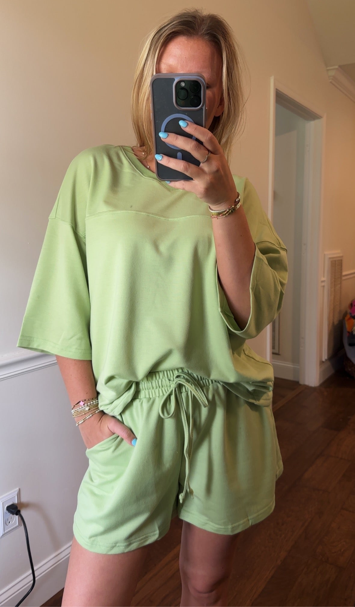 Solid Loose V Neck Half Sleeve Tee and Shorts