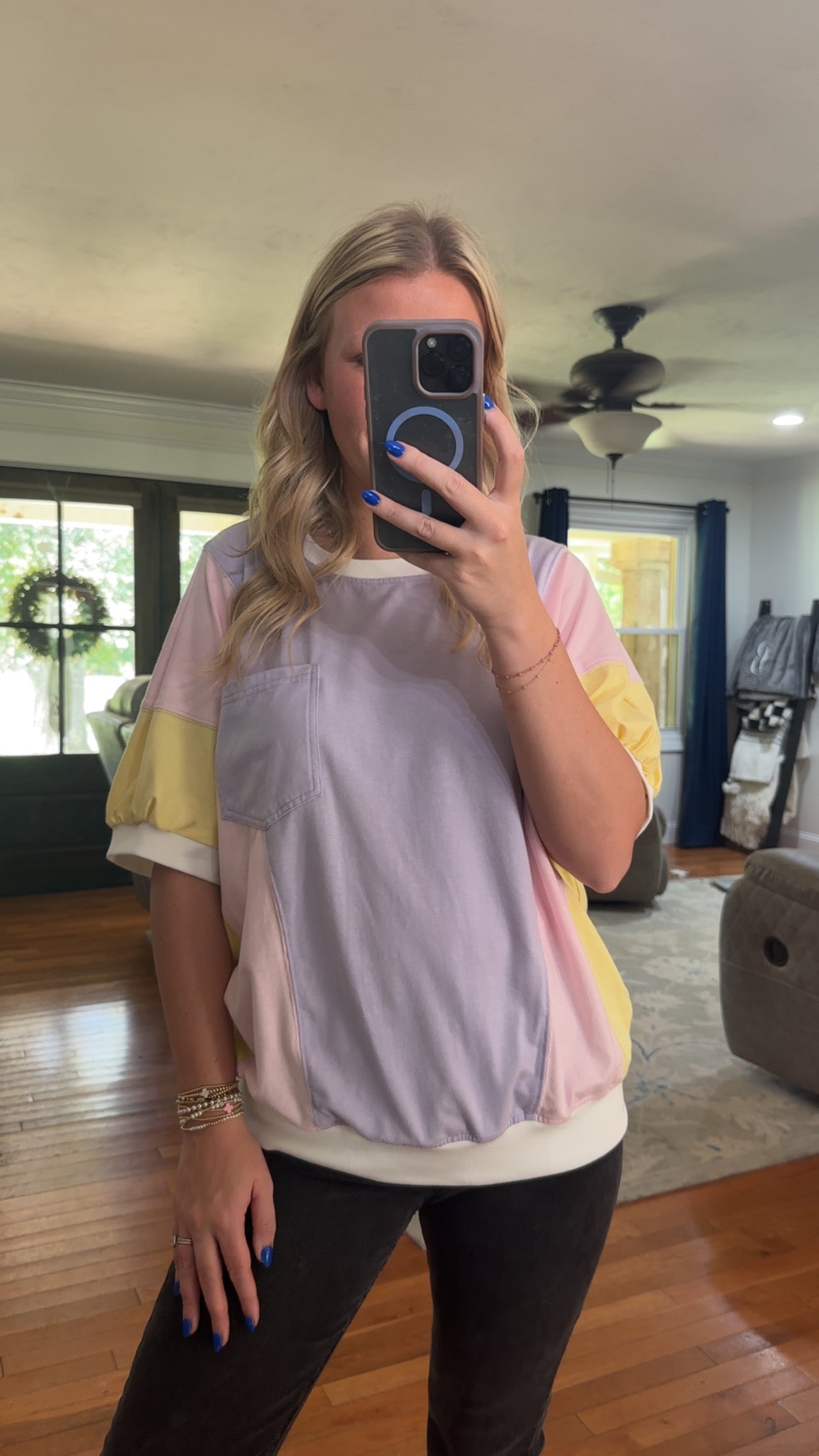 Purple Colorblock Patchwork Half Sleeve Oversized Tshirt