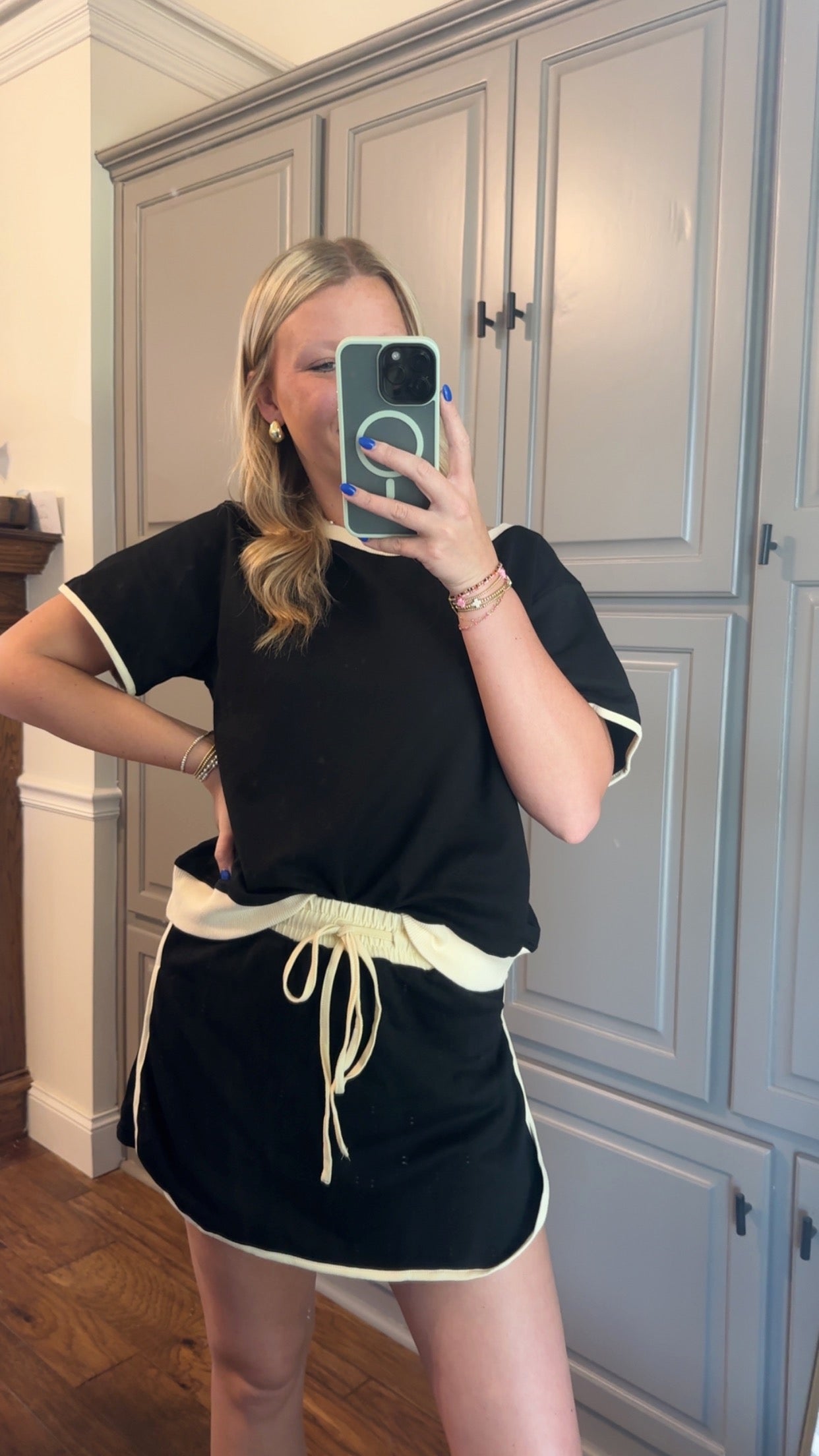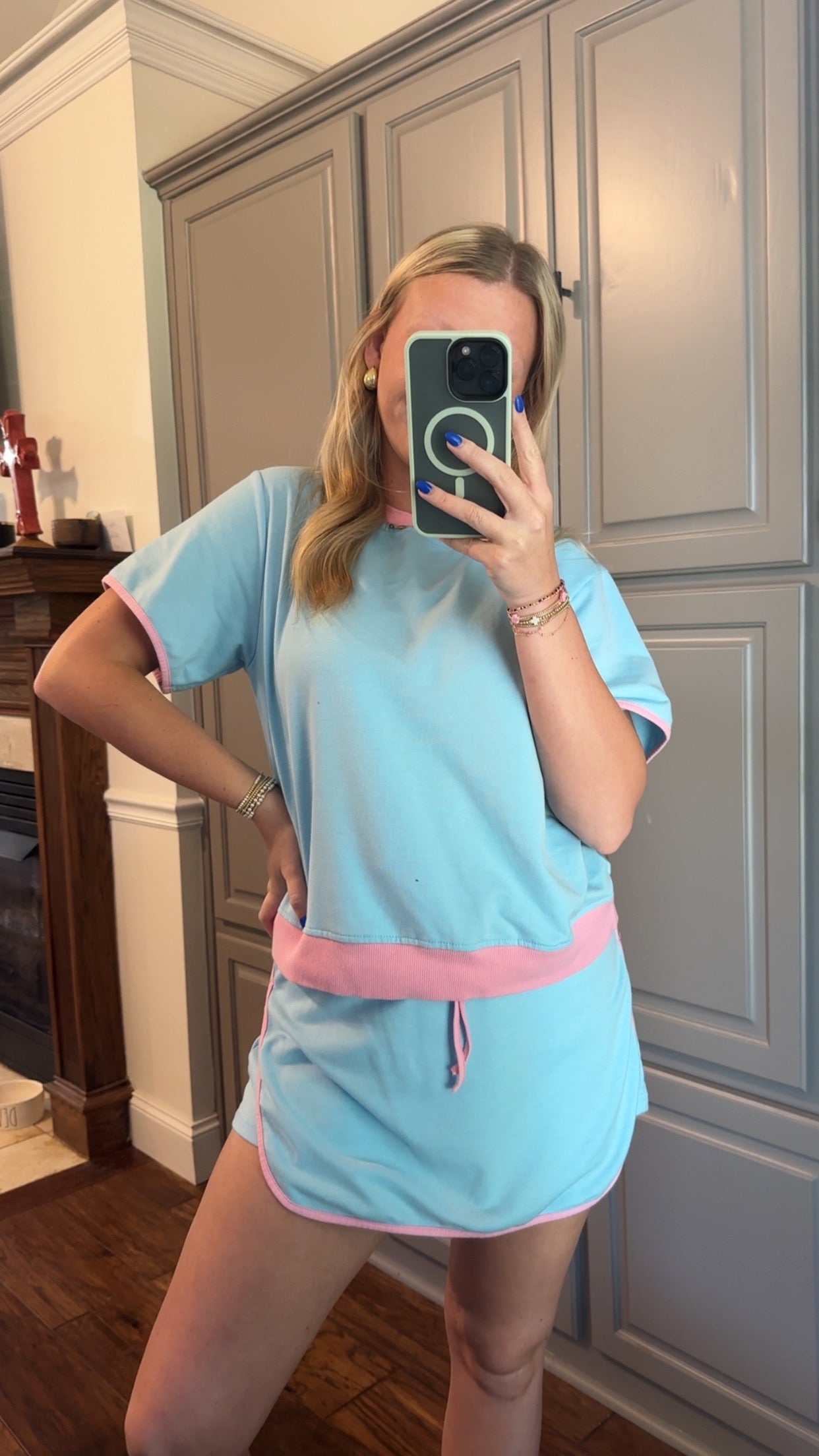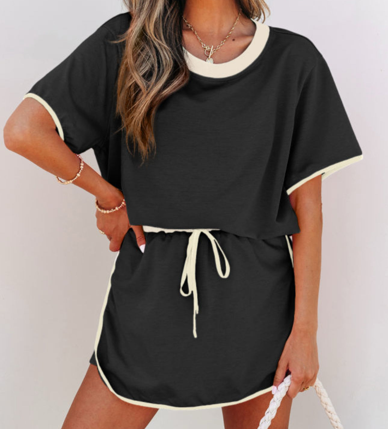 Colorblock Edge Drop Shoulder Tshirt and Skort 2 Piece Set