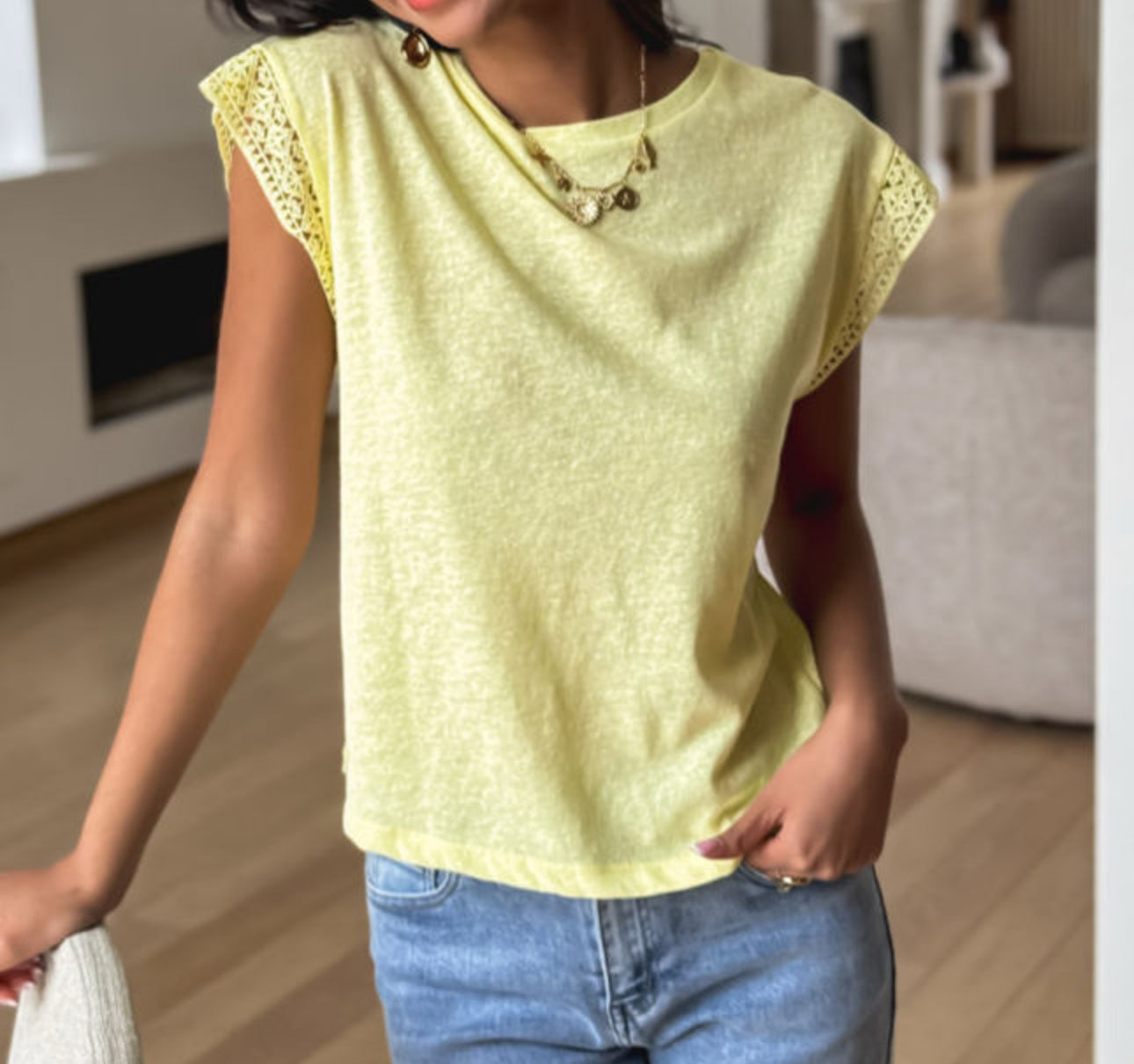 Lace Patchwork cap Sleeve Round Neck T Shirt