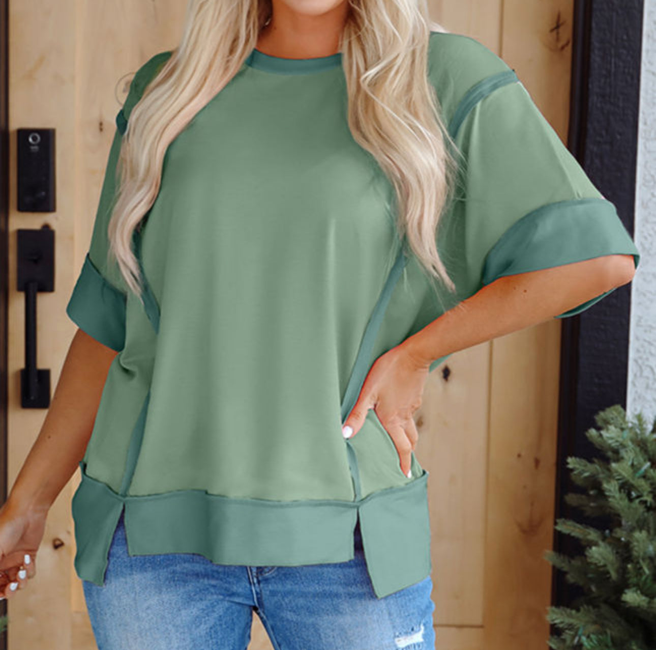 Half Sleeve Raw Seam High Low Slide Split
